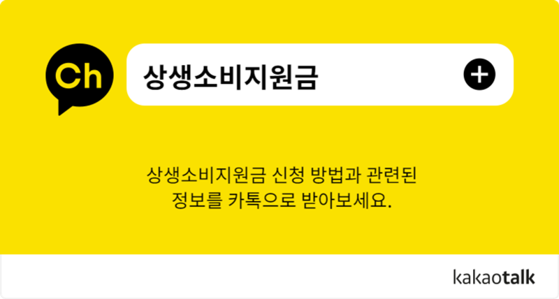구체적인 상생소비지원금 사업공고가 발표되면 정확힌 신청방법을 카카오톡으로 받을 수 있다. 아래 채널 링크를 클릭하여 관련 정보를 놓치지 말자.